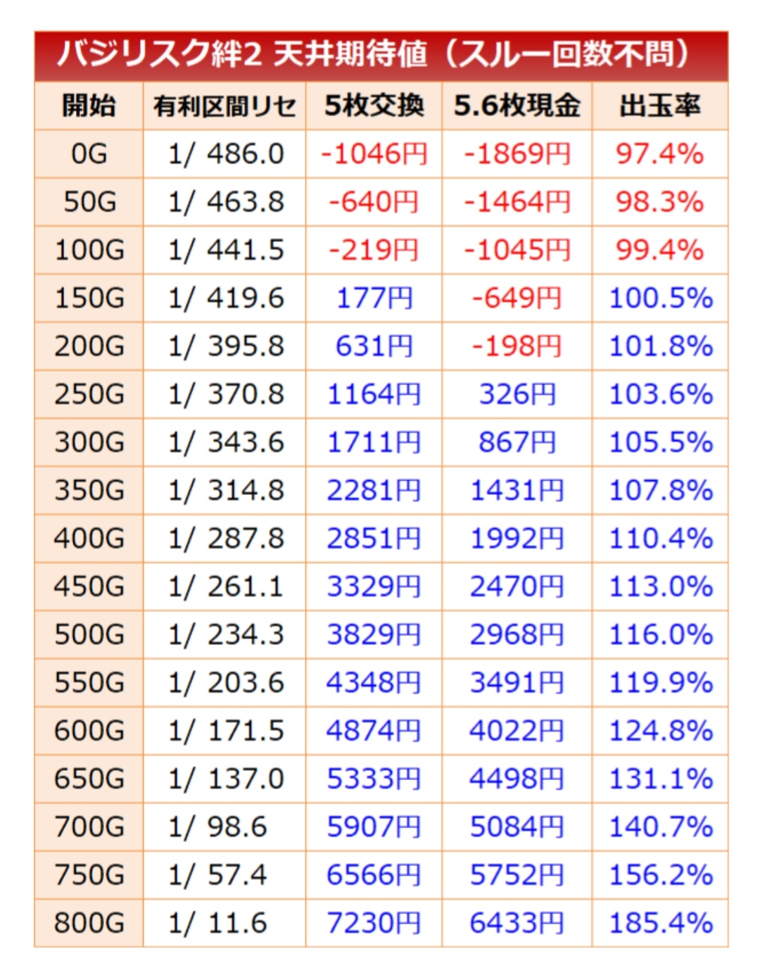 そして、もう1つが期待値金額と換金率の関係です。現金投資と貯玉投資では、期待値が変わります。5.0枚と出されてるのは、貯玉なら等価として計算して貰って大丈夫です。ただ、住まいの地域によっては、換金率が5.6枚の処もあるでしょう。私の住んでいる処は、5.1枚なので換金率は良い方ですが、この換金率も気にして期待値を考えて下さい。現金投資だと等価では無くなるので、この部分も気にする必要があります。