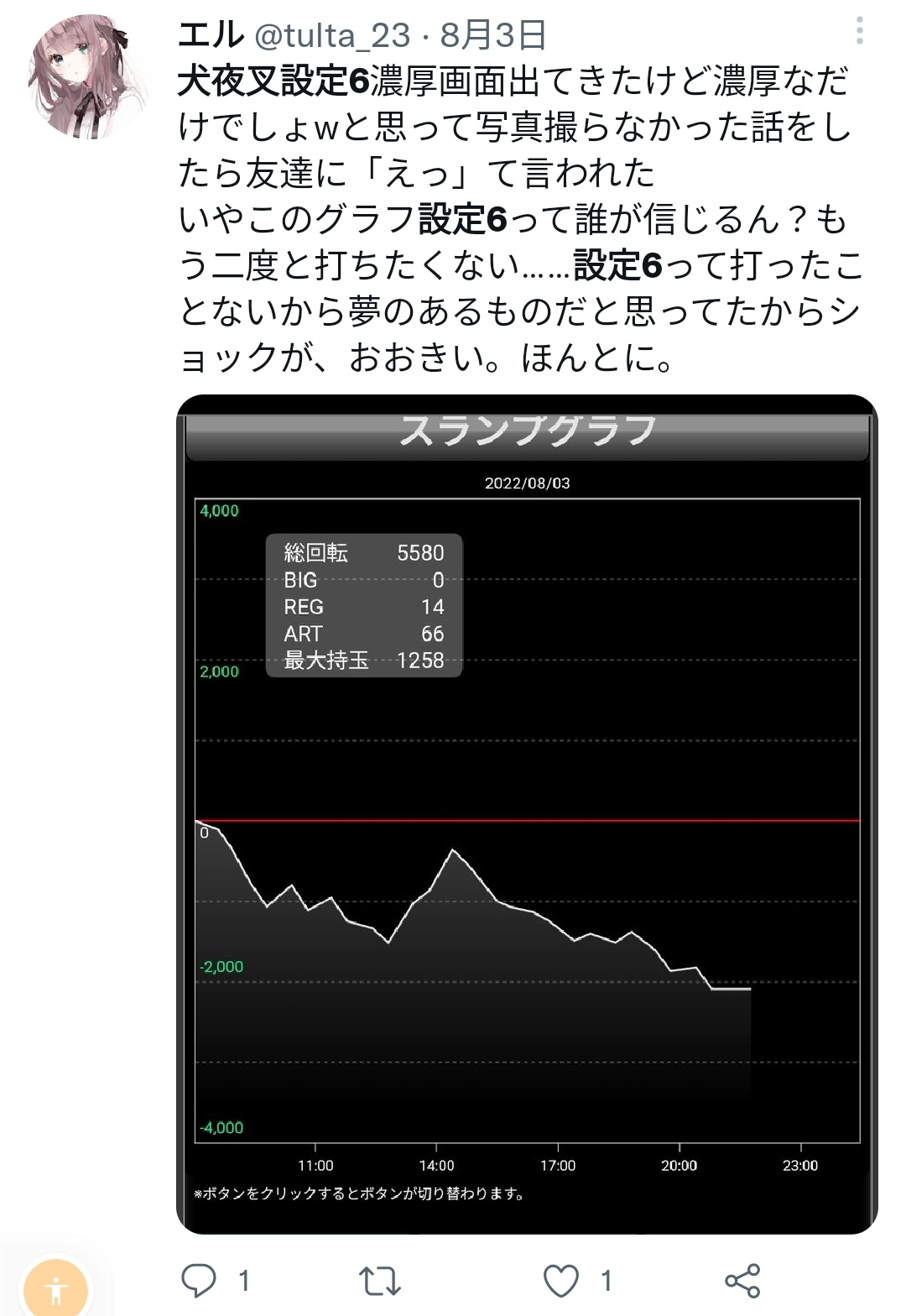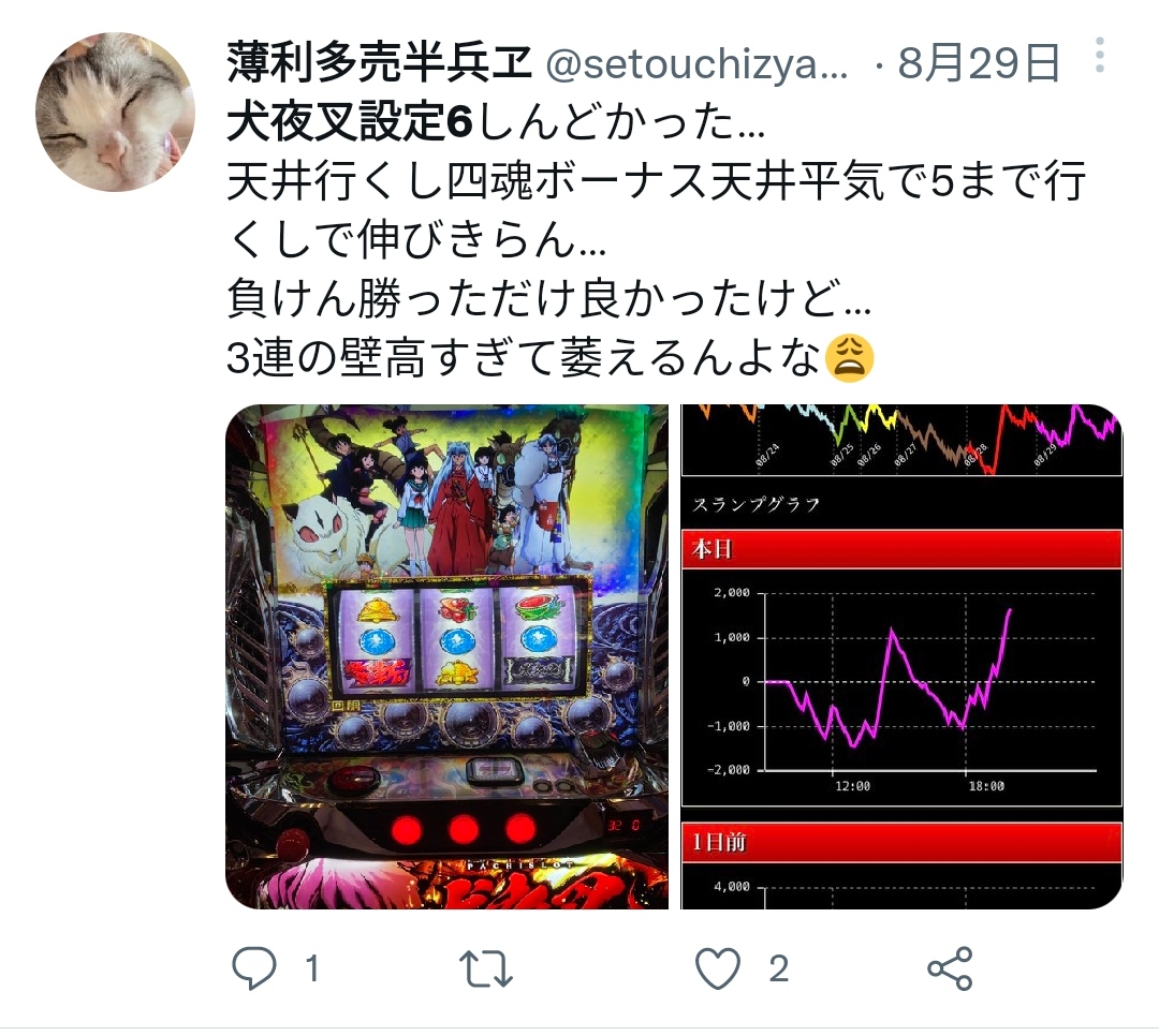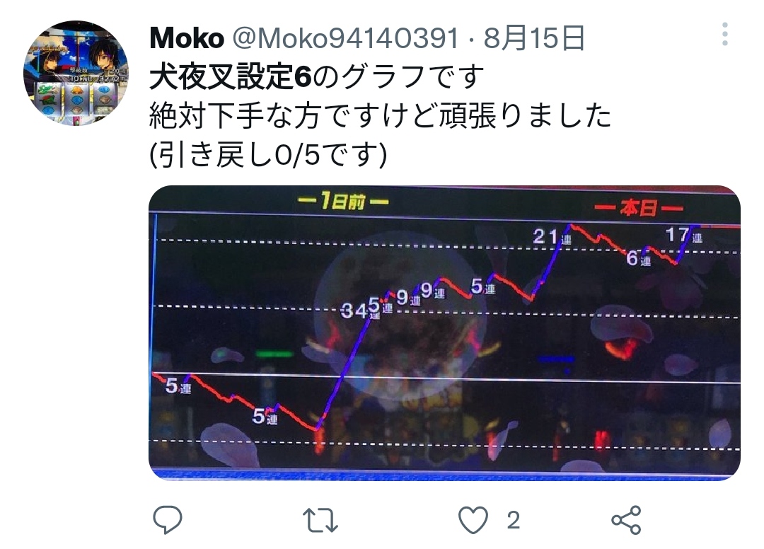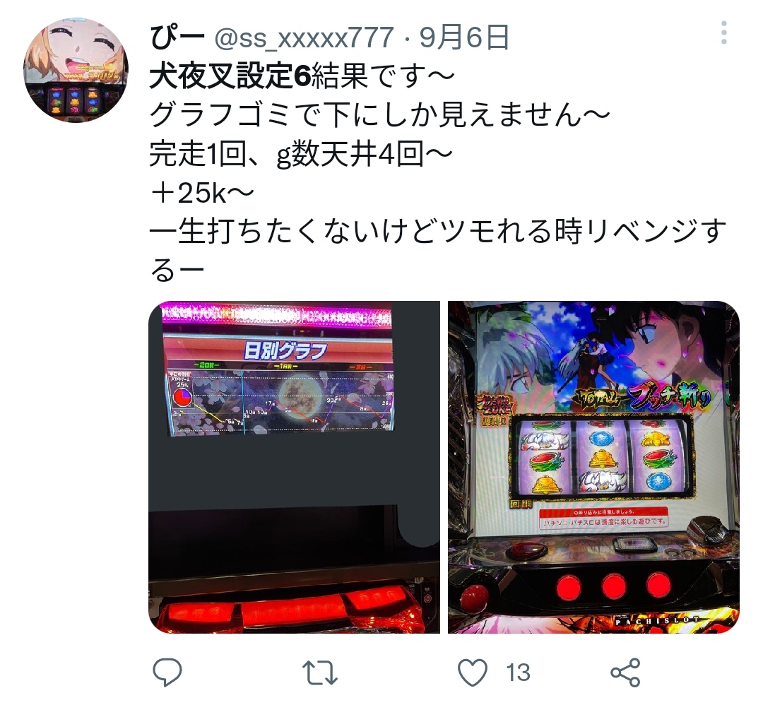 今回は、Twitterで載せられている設定6確定のスランプグラフなどを紹介していきます。ほんとに犬夜叉の設定6グラフは、シンドイのが多い印象です。
