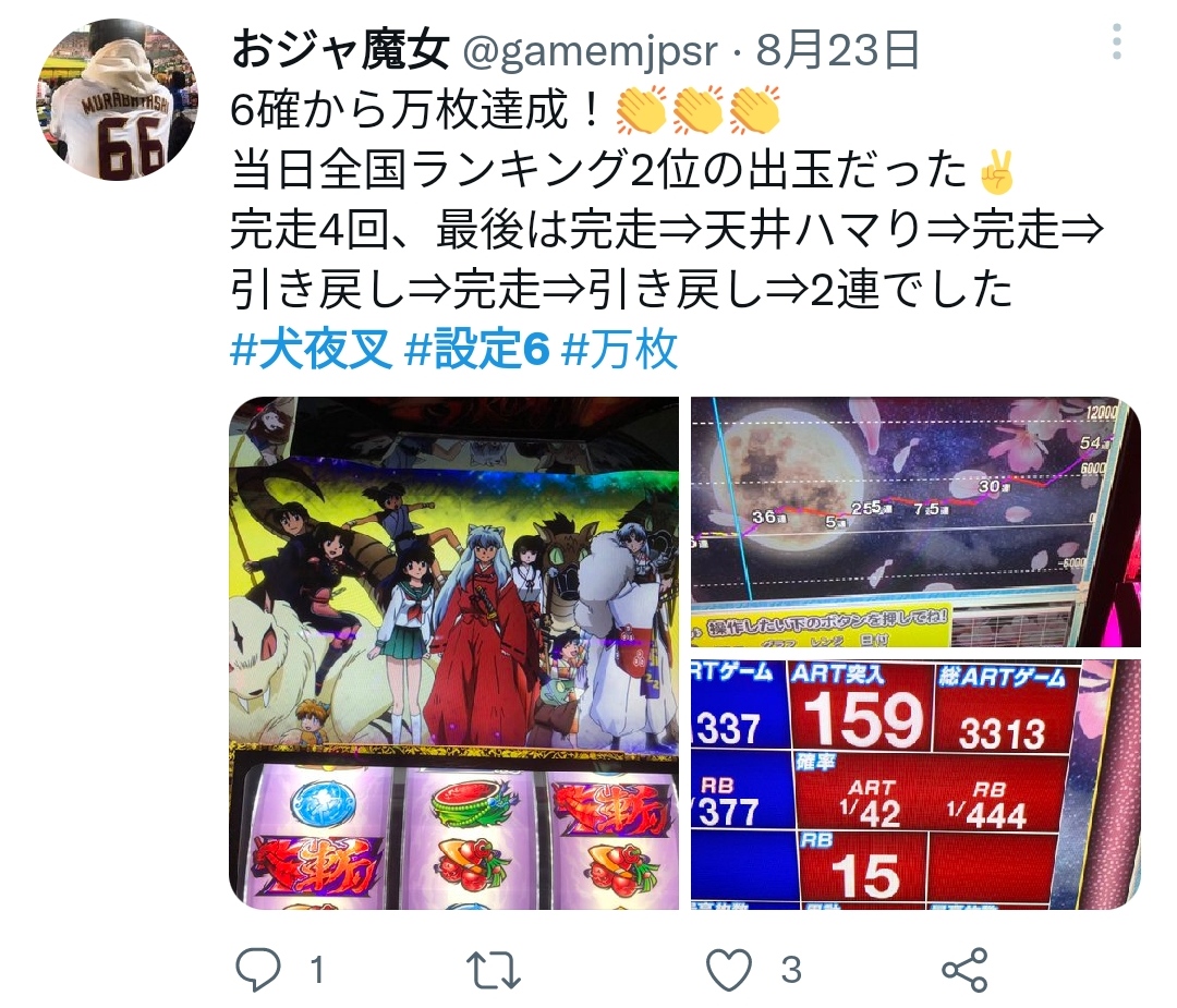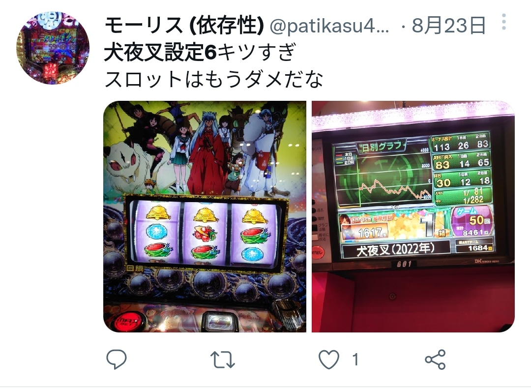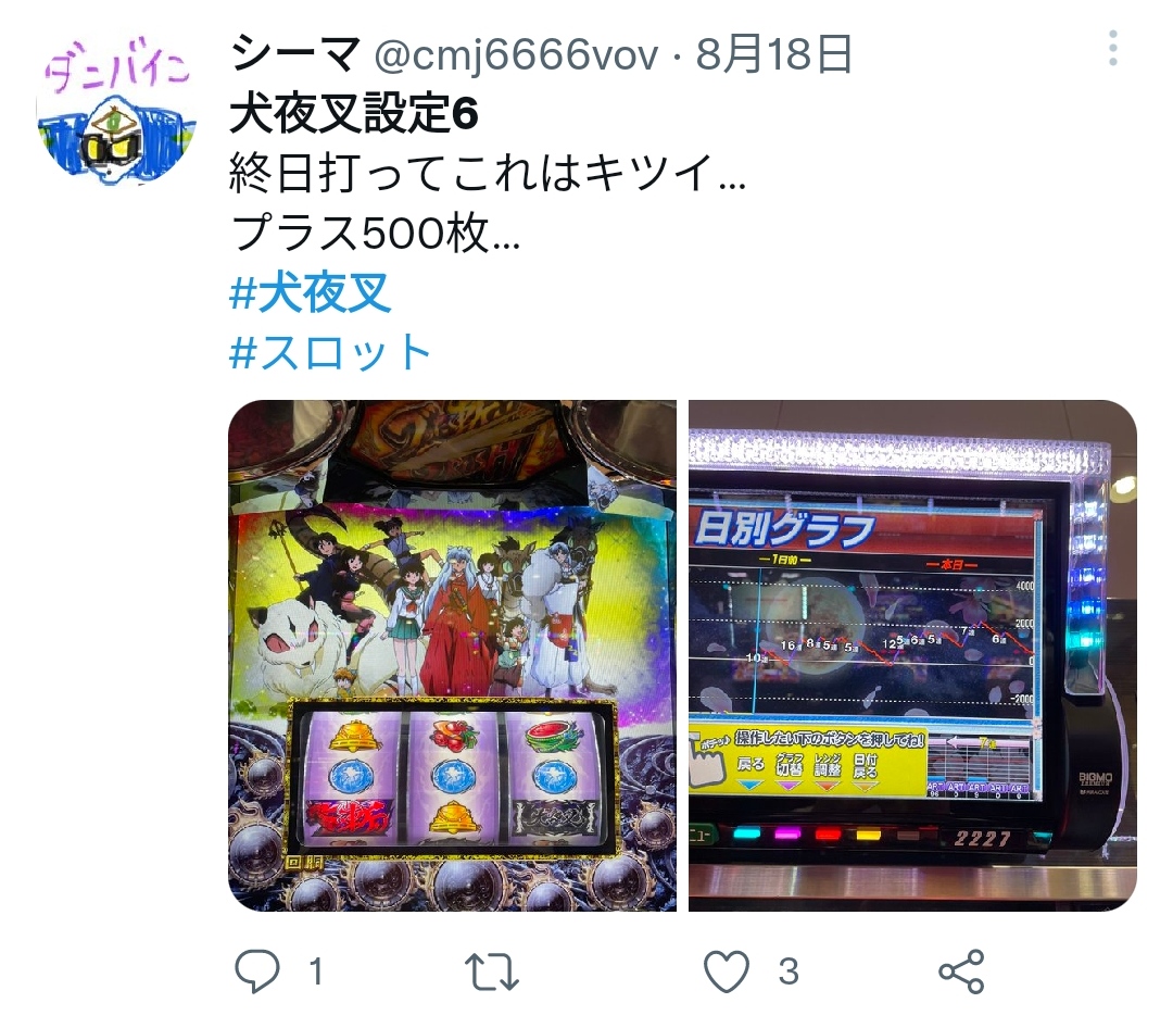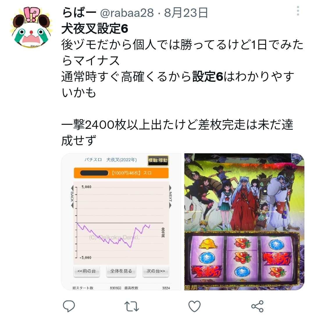 色んな人に犬夜叉の設定6がどんな感じなのかを知ってもらえれば幸いです。これを見て今後のスロット実践に役に立てて貰えればと思います。