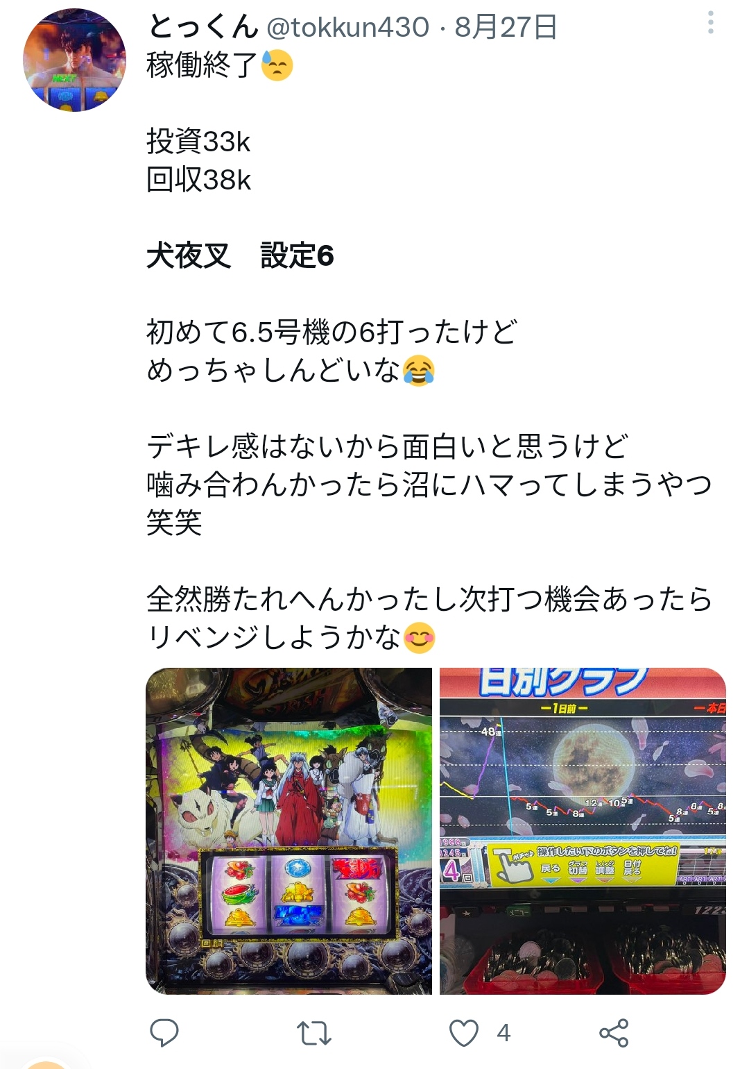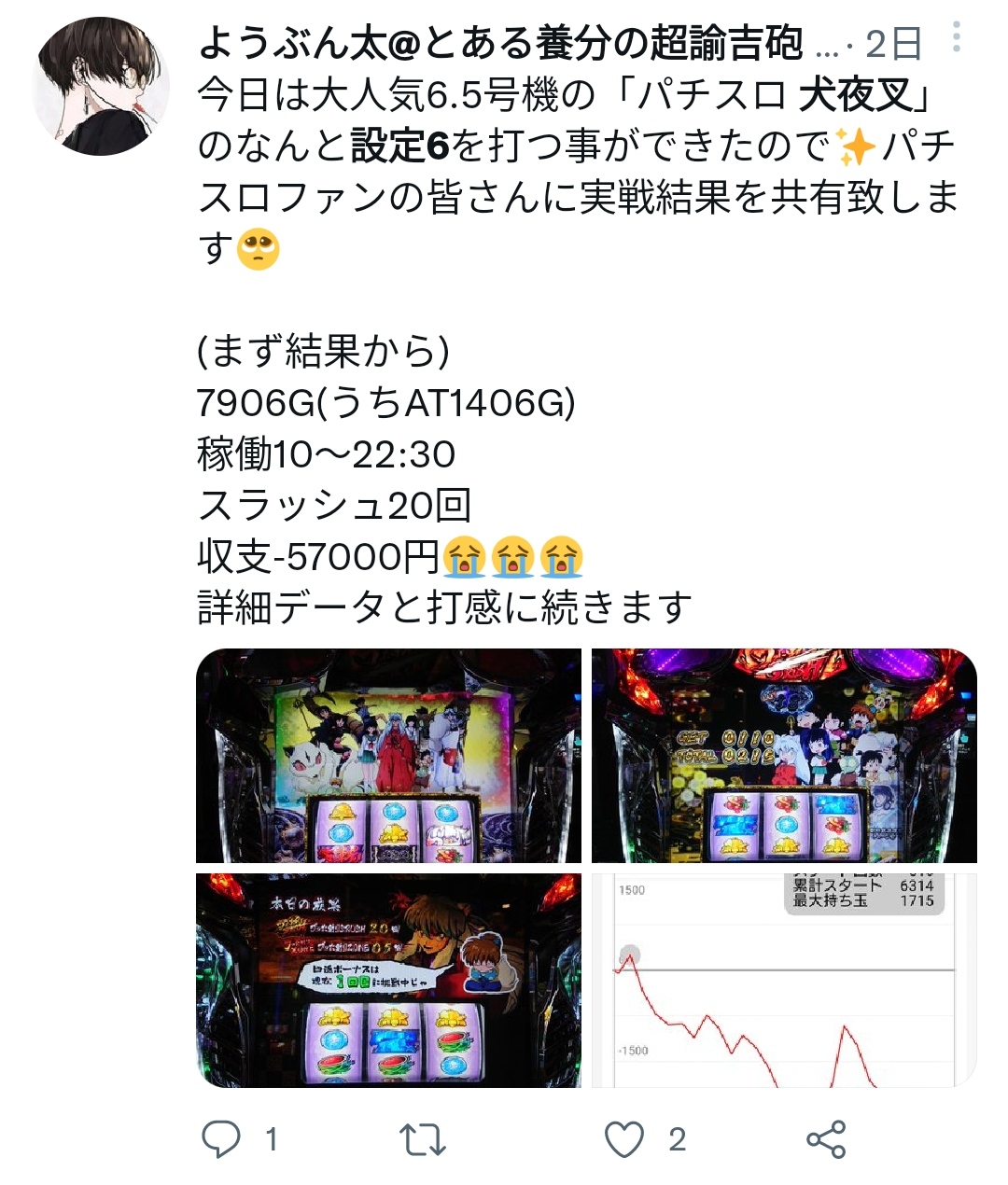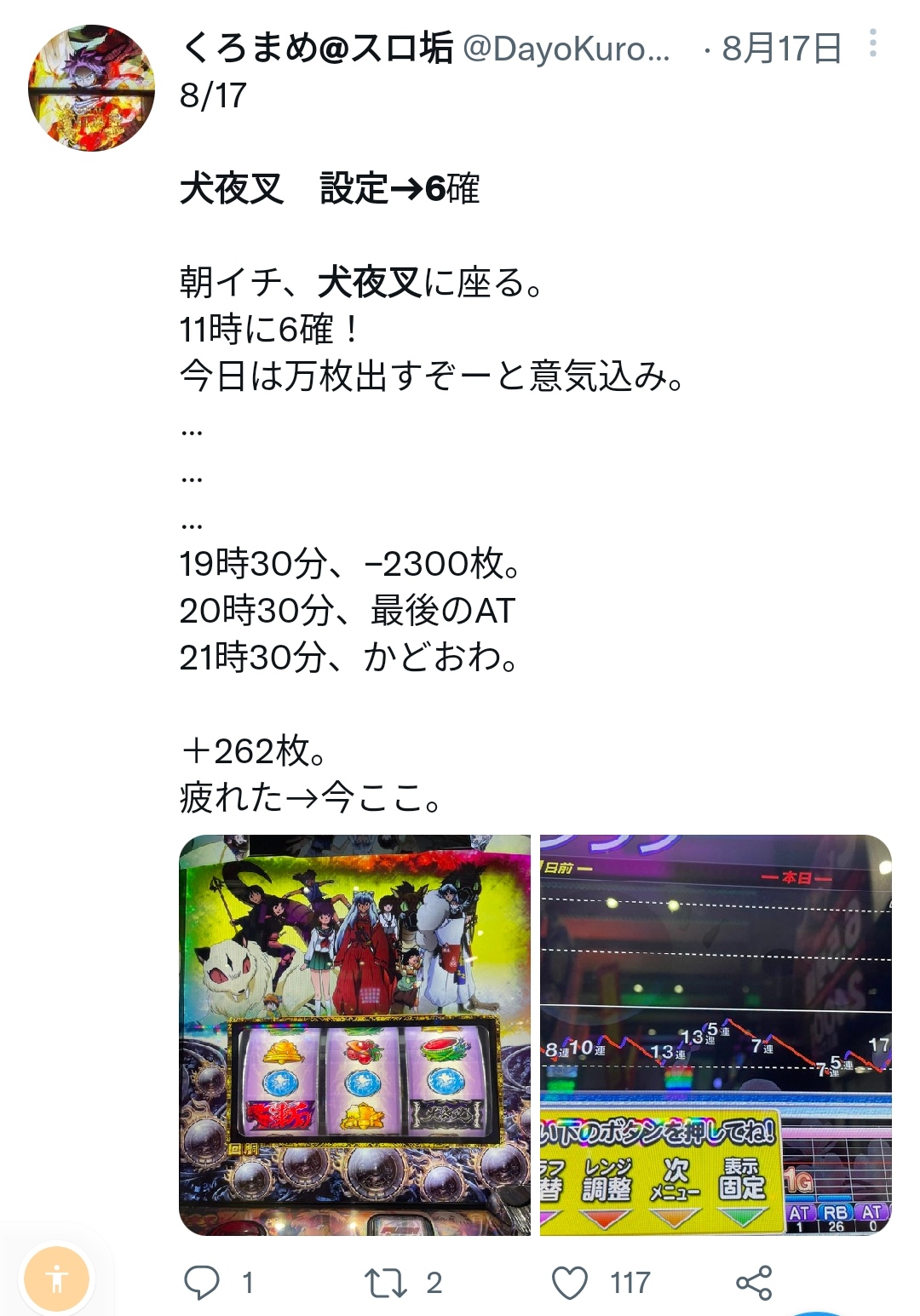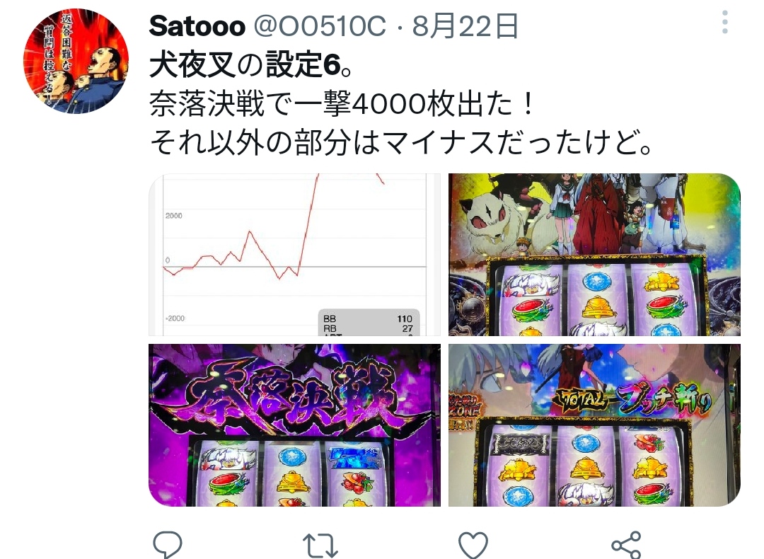 色んな人に犬夜叉の設定6がどんな感じなのかを知ってもらえれば幸いです。これを見て今後のスロット実践に役に立てて貰えればと思います。
