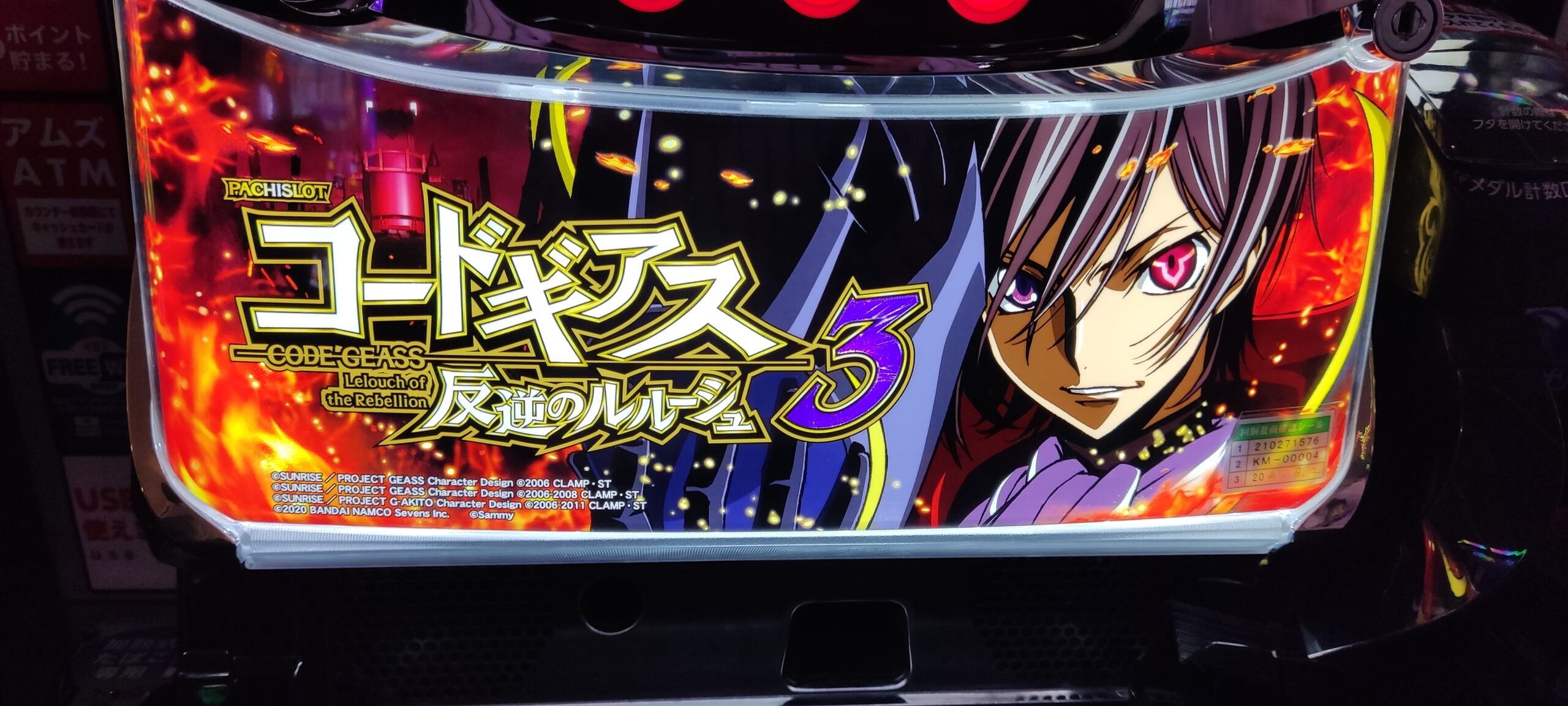 とりあえず、何を狙うか考えて過去に全台系になっている機種が多いのを見ると、コードギアスが何度か全台系になっているのでそれを狙う事にしました。
