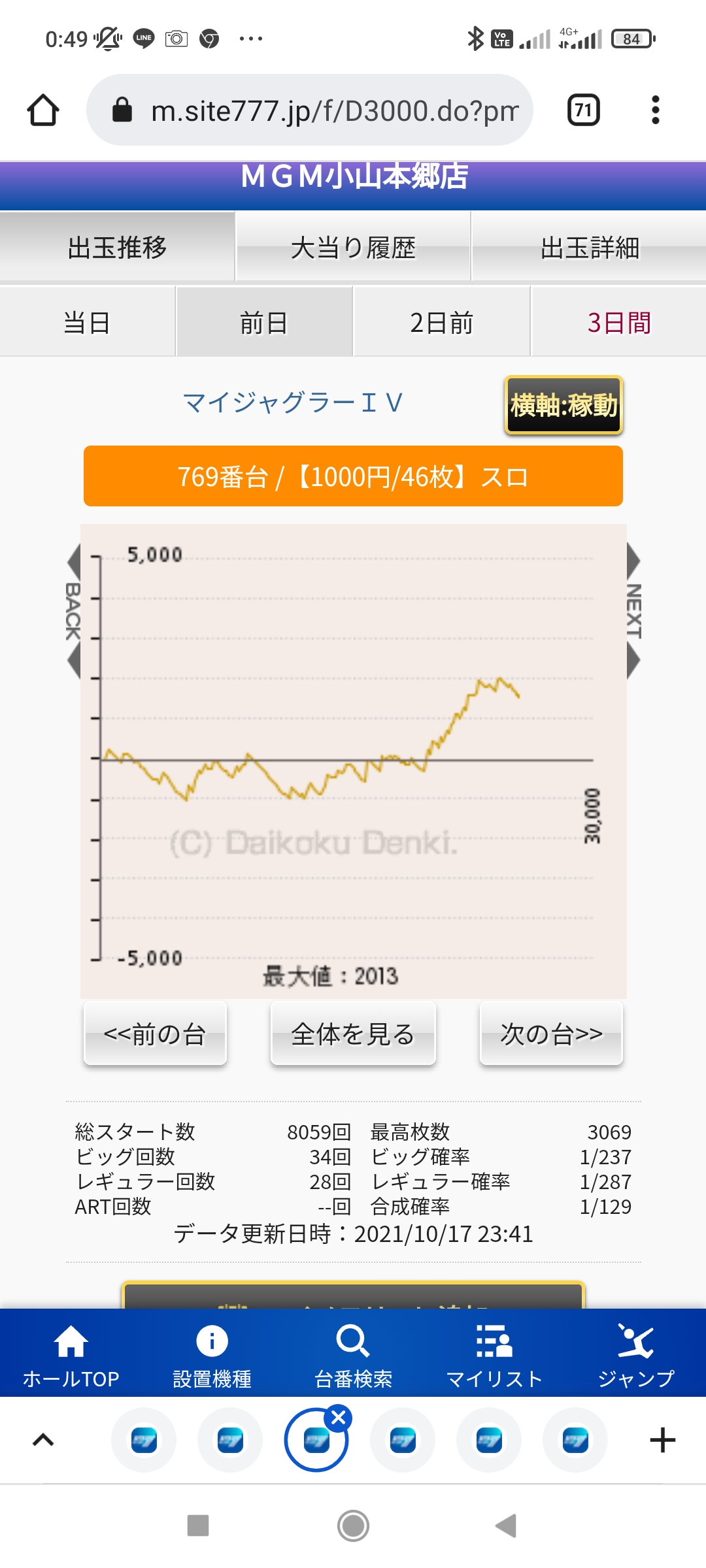 ジャグラー実際 2021 10/24 スロット遊技 2021年10月18日2021年10月24日 ランキングパーツ 投資23000円 4500ゲームでぶどう6.2だったが、 マイナス500枚の所で辞めてしまった! その後次の人が出してしまって 完全なヤラカシをしてしまった! ランキングパーツ スロット遊技 よかったらシェアしてね! URLをコピーしました! URLをコピーしました! マイジャグ3実践 この記事を書いた人 ミンティア@スロット スロットでは、設定狙い台、期待値稼働(ハイエナ)をします。特に、設定狙いをして台が無いなら期待値稼働に切りかえて稼働する事が増えてきました。 マイジャグ、ファンキージャグラー、バジリスク絆2、番長ZERO、シンフォギア、コードギアス3、沖ドキDUOなどをやる事が比較的多いかも知れません。 収支が最近大きいのは、バジリスク絆2となっています。期待値稼働としての割合で言えば、沖ドキDUOとなります。 このブログでは、そんな自分のスロット稼働や考えている事などを表現していきたいと思っています。 関連記事 スマスロキン肉マン 2024年3月13日 パチスロ からくりサーカス の万枚スランプグラフを集めてみた 2023年7月4日 L ベルセルク無双の万枚スランプグラフを集めてみた 2023年6月15日 スロット ソードアート・オンラインの万枚スランプグラフを集めてみた 2023年6月14日 パチスロ コードギアス 反逆のルルーシュ3 C.C.&Kallen ver.の高設定っぽいスランプグラフを集めてみた 2023年6月12日 この素晴らしい世界に祝福をの設定6をTwitterから抜粋 2023年5月2日 ゴブリンスレイヤーの大凹みからの爆出しスランプグラフを集めてみました 2023年4月24日 特定日での新鬼武者2実践 2023年4月24日 コメント コメントする コメントをキャンセルコメント ※ 名前 ※ メール ※ サイト 次回のコメントで使用するためブラウザーに自分の名前、メールアドレス、サイトを保存する。 上に表示された文字を入力してください。 Δ