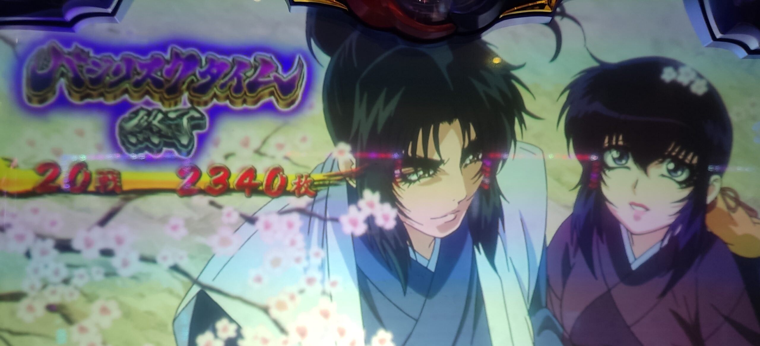 その後、双忍の時開始画面が第1戦目から鈴虫でした。これはかなりレアです。バジリスク絆2を50万ゲーム以上打ってますが、ほとんど出ません。