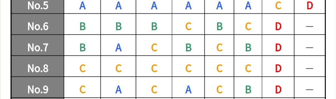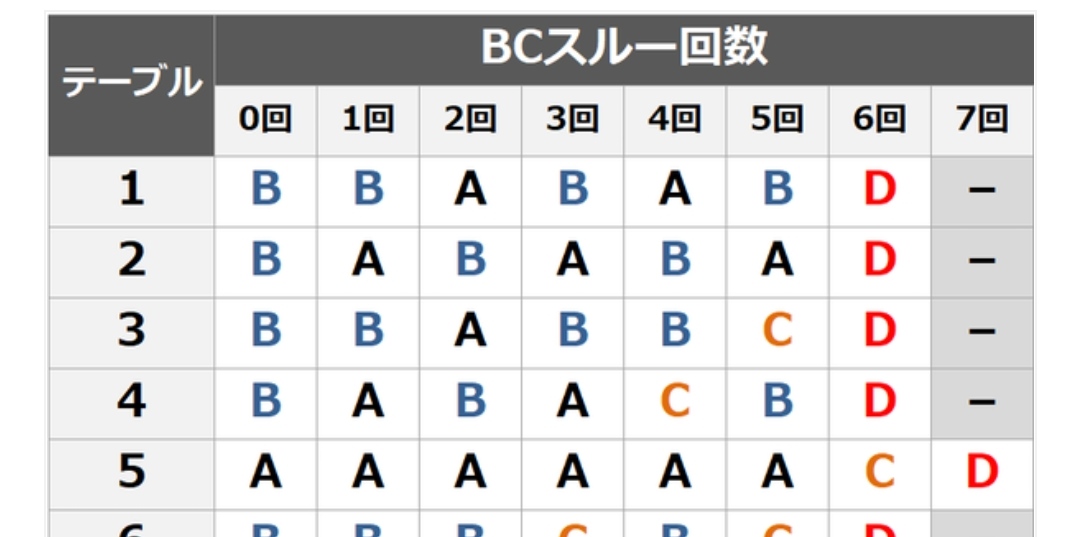 テーブル4が2回続けて出てるので、6は弱いかなと判断しました。