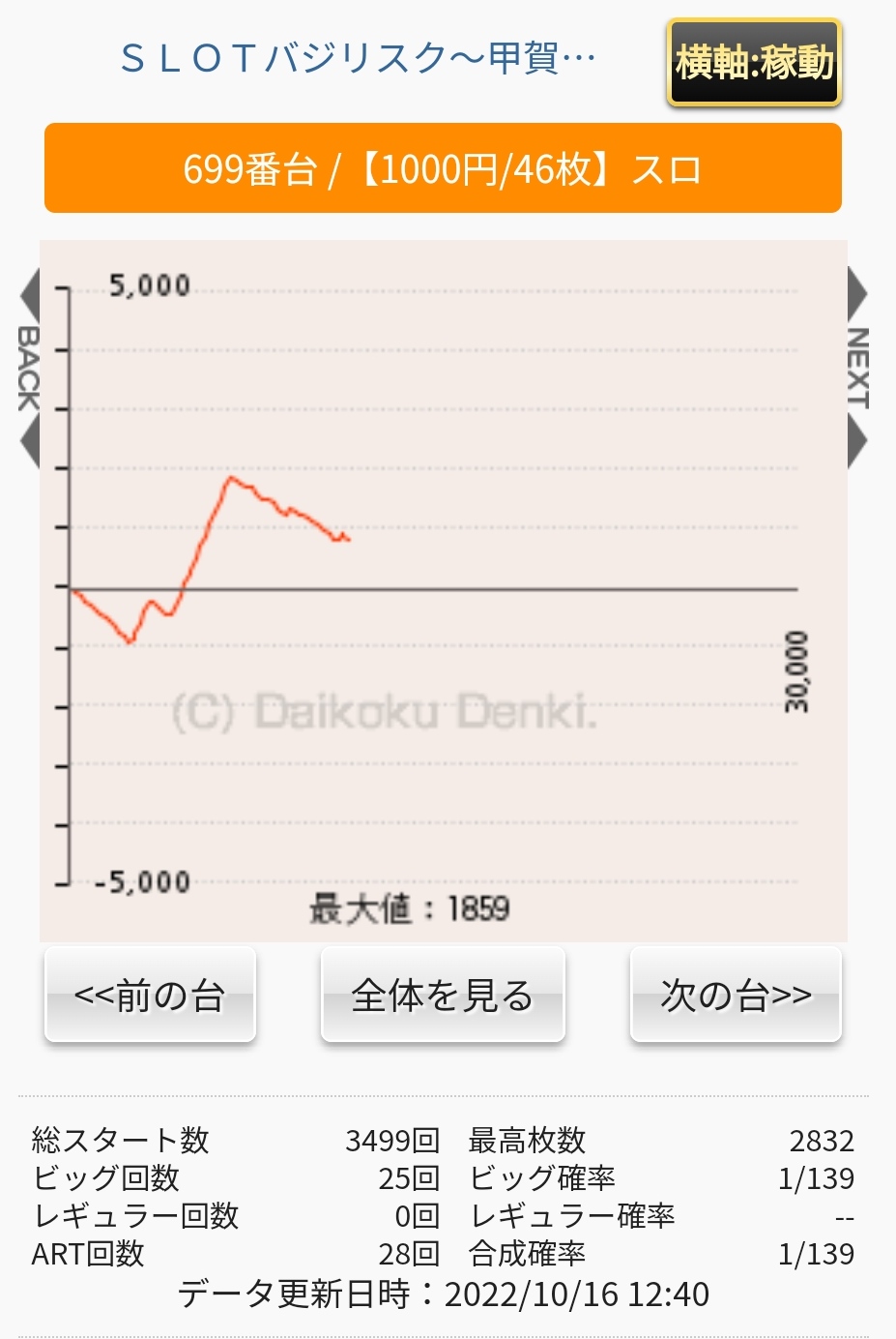 犬夜叉の候補台は、両方とも設定がありそうだったので、座ろうと悩んだ台としての判断は正しかったのかなと思いました。犬夜叉を座っておけば良かったなと後悔してます。バジリスク絆2で勝っているとはいえ、後悔はありますね。次回に活かしたいと思います。
