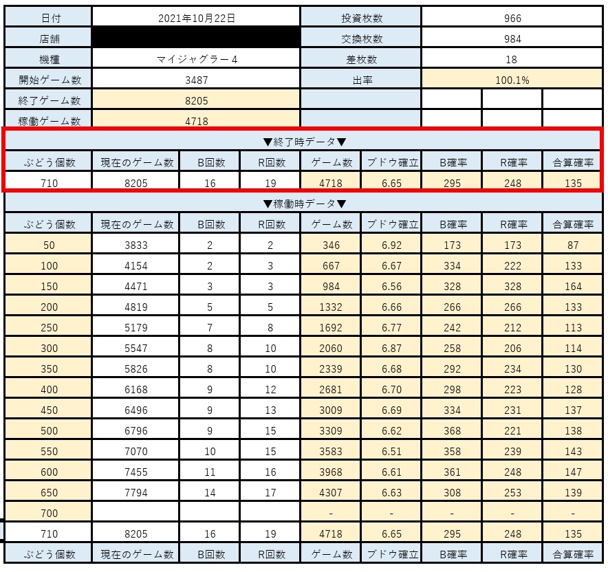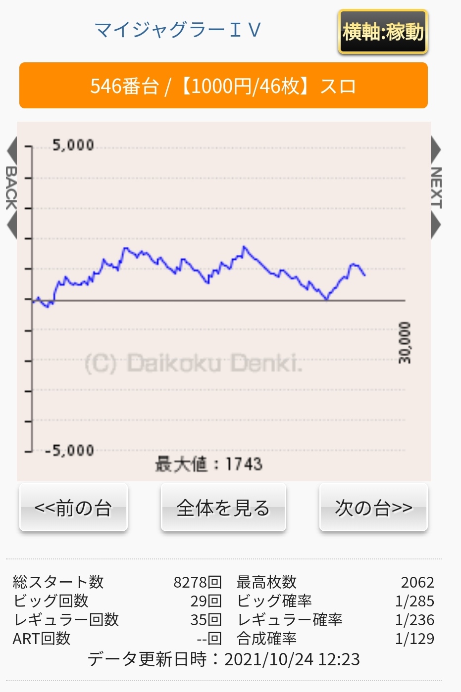 マイジャグ4実践 2021 10/24 スロット遊技 2021年10月23日2021年10月24日 ランキングパーツ 朝から行き、2台実践した! 本日の収支+4060円 ランキングパーツ スロット遊技 よかったらシェアしてね! URLをコピーしました! URLをコピーしました! 特定日のマイジャグ4実践 夕方のゴージャグ実践 この記事を書いた人 ミンティア@スロット スロットでは、設定狙い台、期待値稼働(ハイエナ)をします。特に、設定狙いをして台が無いなら期待値稼働に切りかえて稼働する事が増えてきました。 マイジャグ、ファンキージャグラー、バジリスク絆2、番長ZERO、シンフォギア、コードギアス3、沖ドキDUOなどをやる事が比較的多いかも知れません。 収支が最近大きいのは、バジリスク絆2となっています。期待値稼働としての割合で言えば、沖ドキDUOとなります。 このブログでは、そんな自分のスロット稼働や考えている事などを表現していきたいと思っています。 関連記事 スマスロキン肉マン 2024年3月13日 パチスロ からくりサーカス の万枚スランプグラフを集めてみた 2023年7月4日 L ベルセルク無双の万枚スランプグラフを集めてみた 2023年6月15日 スロット ソードアート・オンラインの万枚スランプグラフを集めてみた 2023年6月14日 パチスロ コードギアス 反逆のルルーシュ3 C.C.&Kallen ver.の高設定っぽいスランプグラフを集めてみた 2023年6月12日 この素晴らしい世界に祝福をの設定6をTwitterから抜粋 2023年5月2日 ゴブリンスレイヤーの大凹みからの爆出しスランプグラフを集めてみました 2023年4月24日 特定日での新鬼武者2実践 2023年4月24日 コメント コメントする コメントをキャンセルコメント ※ 名前 ※ メール ※ サイト 次回のコメントで使用するためブラウザーに自分の名前、メールアドレス、サイトを保存する。 上に表示された文字を入力してください。 Δ